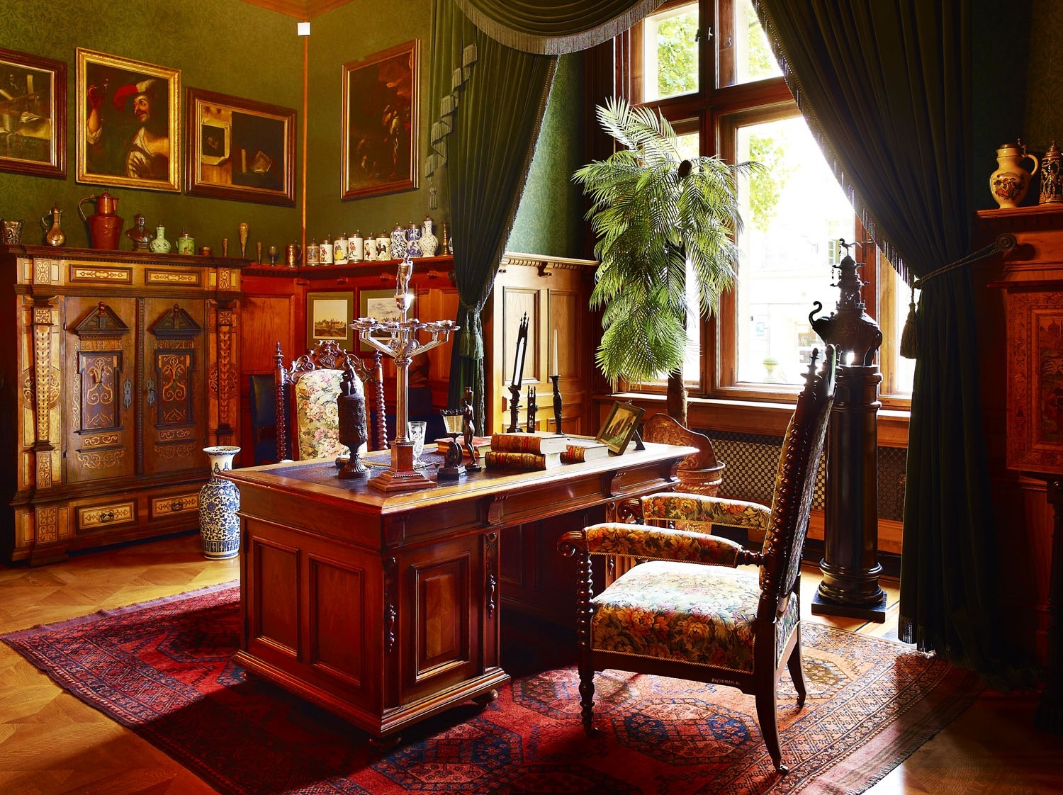 Wewnątrz budynku dawnej willi, zwanej też pałacem (plac Wolności 12A) znajduje się bogato dekorowany hall z klatką schodową. Na pierwszym piętrze kiedyś mieściła się m.in. sala balowa, a dziś sala Urzędu Stanu Cywilnego w Katowicach.