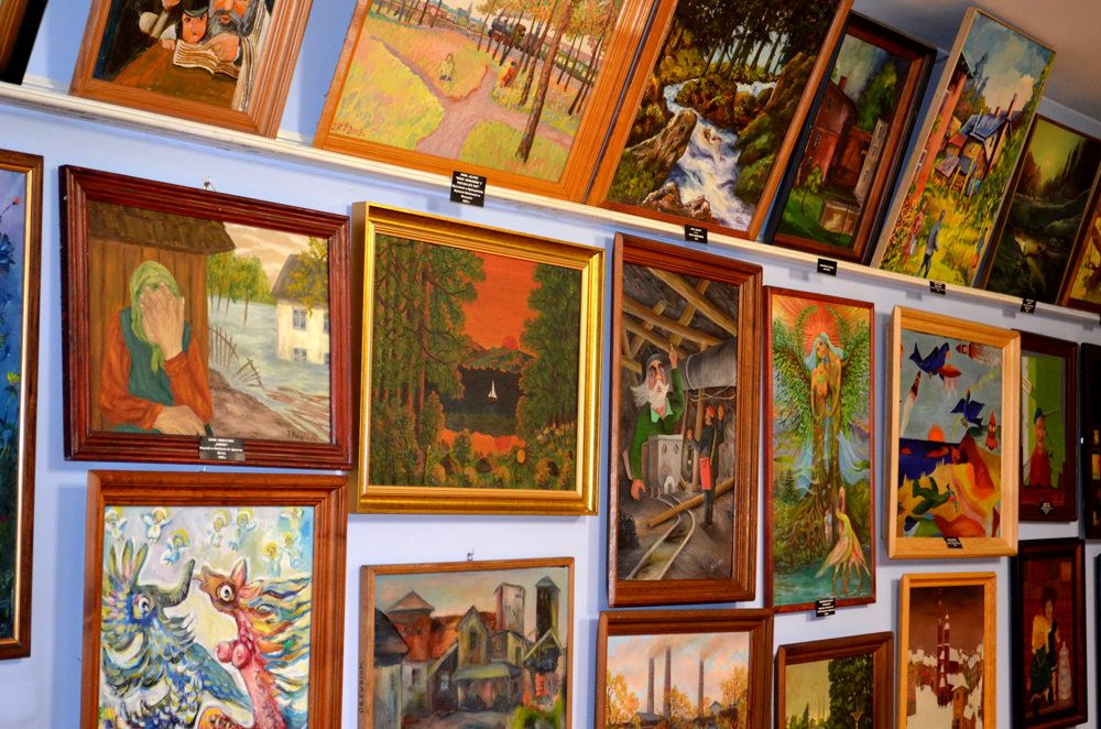 Wśród nich obrazy: Teofila Ociepki, Pawła Wróbla, Leopolda Wróbla, Erwina Sówki, Rudolfa Riedla, Jana Nowaka czy Władysława Lucińskiego. Kolekcję wzbogacają obrazy malarzy nieprofesjonalnych spoza Śląska: Ryszarda Koseka z Płocka, Romana Lipy z Rzeszowa, Zofii Dembińskiej z Białegostoku, Aleksandra Malinowskiego z Bydgoszczy, Marianny Razik z Ciechanowa czy Nikifora Krynickiego. Większość obrazów, które znajdują się w kolekcji, zainspirowana jest Śląskiem.