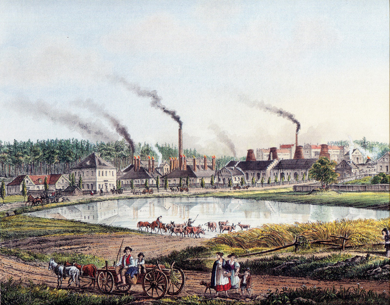Siemianowice Śląskie, Huta „Laura” w poł. XIX w. na litografii Friedricha Wilhelma Knippla