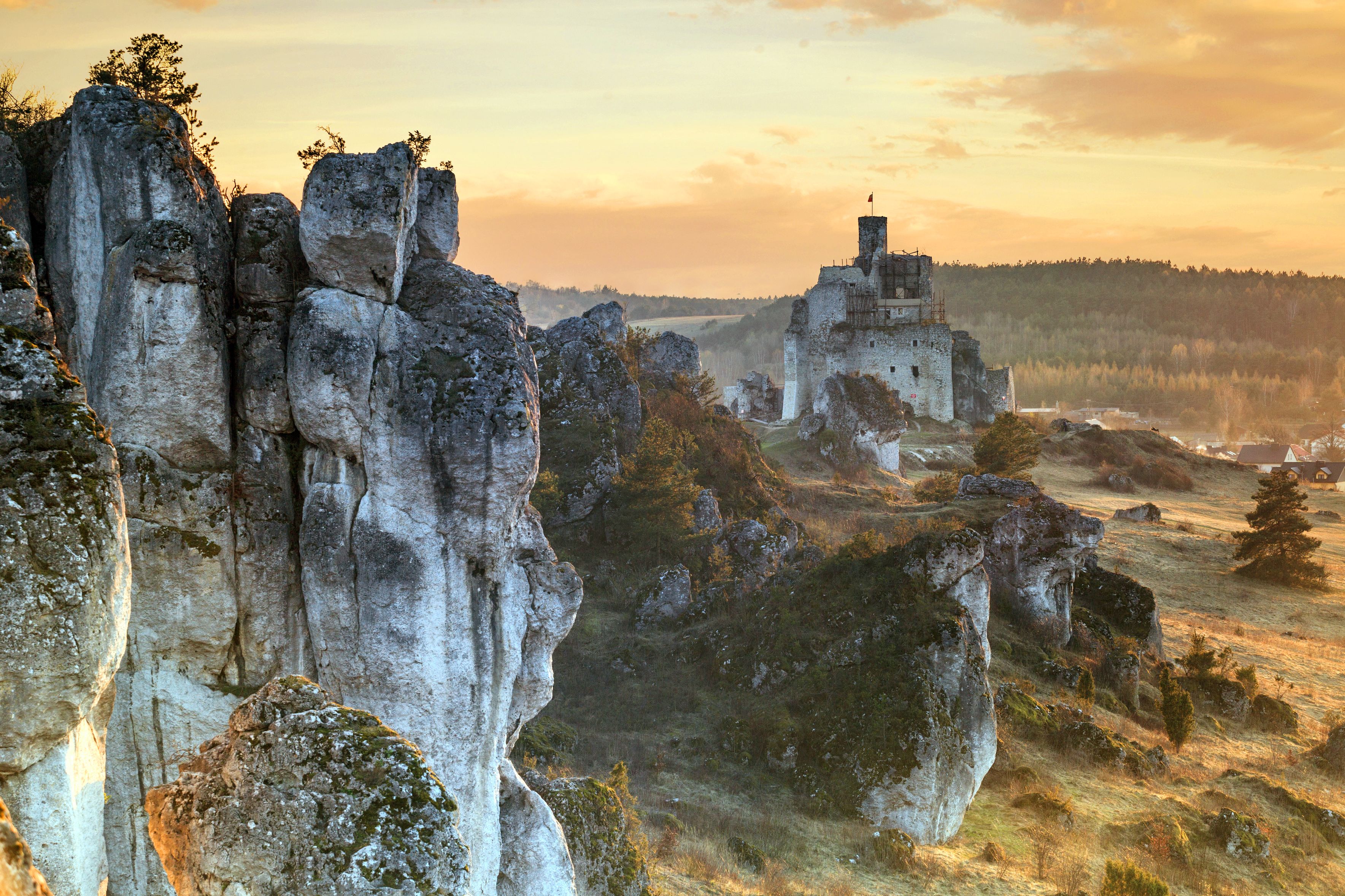 Widokowy spacer proponujemy rozpocząć od Mirowa. O tamtejszym zamku wspominano już w 1405 r., choć jest on zapewne o wiek starszy. Pierwotnie był niewielki, później rozbudowano go w zespół architektoniczny, obejmujący zamek górny i dolny, trzy dziedzińce i majdan gospodarczy. Gdy na początku XVI w. Mirów zamieszkali Myszkowscy, zamek podwyższono o dwie kondygnacje, a w wieży urządzono część mieszkalną. Przechodząca z rąk do rąk warownia skapitulowała w okresie „potopu” szwedzkiego, a jej kres przypadł na koniec XVIII w. Zamek popadł w ruinę i do dziś nią pozostaje. Z tego powodu, choć ściany dawnej warowni zostały przez nowych właścicieli zabezpieczone, nie można go jeszcze zwiedzać. Zatem nie pozostaje nic innego, jak go obejść i ruszyć pieszym szlakiem w kierunku bliźniaczego Zamku w Bobolicach. Zamek ten, podobnie jak ruiny zamku w Mirowie przeszedł w ręce prywatne. W przypadku Bobolic nowi właściciele zdecydowali się na odbudowę, a właściwie hipotetyczną rekonstrukcję. Dziś zamek prezentuje się tak, jak – według historyków, którzy opracowywali projekt odbudowy – mógł wyglądać w czasach świetności. Zamek w Bobolicach był warownią broniącą granic Królestwa Polskiego. Oba zamki wraz z innymi Orlimi Gniazdami tworzyły linię obronną, dlatego wybudowano je na tyle blisko siebie, że możliwa była szybka komunikacja pomiędzy poszczególnymi warowniami.