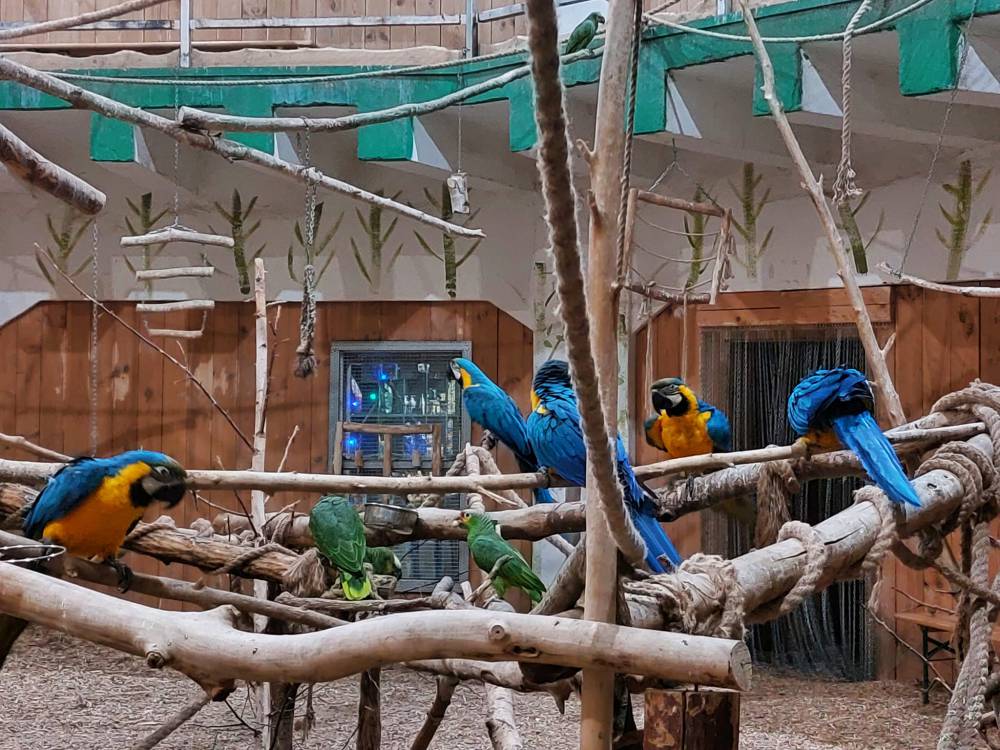 Świat papug imponuje barwami, gatunkami i charakterami tych bardzo inteligentnych zwierząt. To ciekawe i jednocześnie bardzo ciekawskie ptaki! Papugarnia daje wyjątkową możliwość poznania ich z bliska. W hali lotów papugi swobodnie latają nad głowami zwiedzających. Można je obserwować, fotografować, karmić z ręki. Zabawa i pieszczoty niezmiennie wprawiają je w doskonały humor.