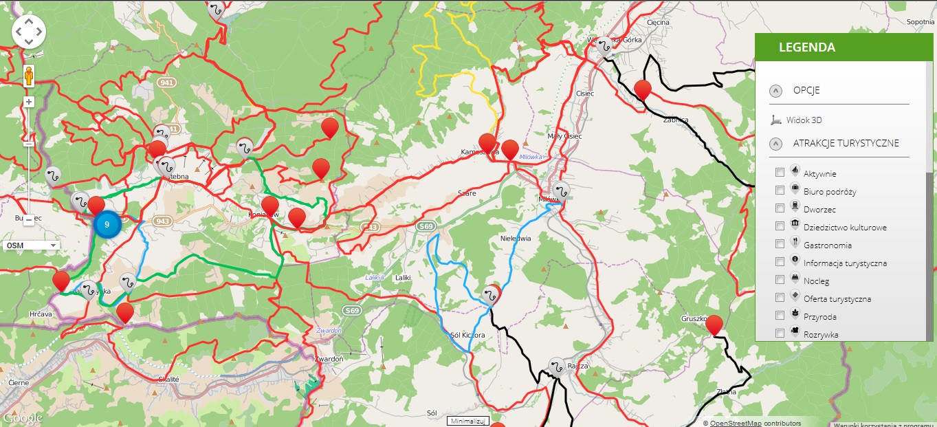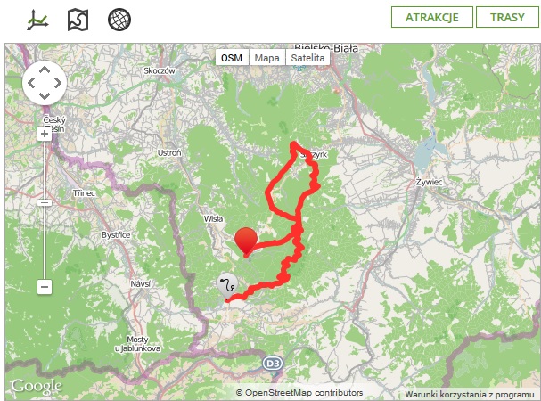 Każdy ze szlaków jest szczegółowo przedstawiony na mapie, np Trasa Skrzyczne Trophy: