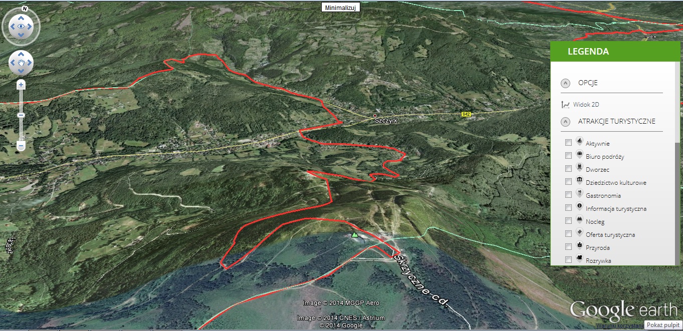 Możliwy jest podgląd trasy na mapie 3D:
