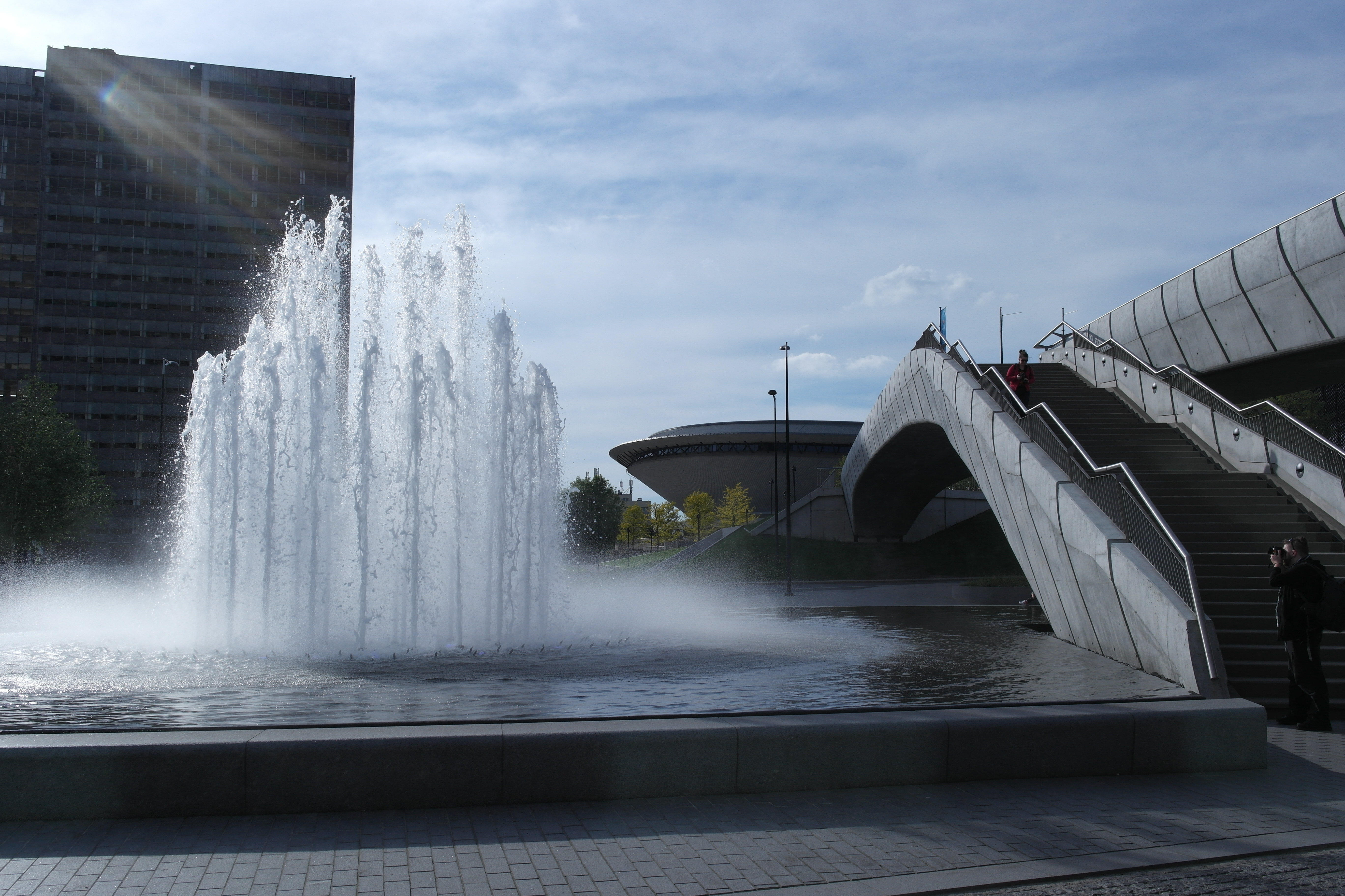 Idąc od strony Spodka natrafiamy na siedzibę MCK. Czarna, nawiązująca do śląskiego węgla, bryła świetnie uzupełnia przestrzeń. Budynek zaprojektowali architekci z warszawskiej pracowni JEMS Architekci. Czarną, elegancką i jednocześnie dość zimną konstrukcję przełamuje zielony dach, stanowiący niezwykłą platformę, z której widać nie tylko Spodek i inne obiekty Strefy, ale też całe centrum Katowic. Z niego widać m. in. jak wiele w mieście jest zieleni.