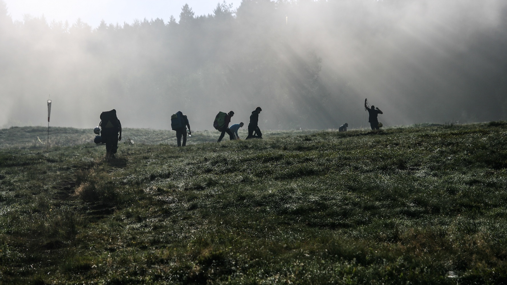 Wyjście na startowisko wczesnym rankiem, Międzybrodzie Żywieckie, Szkoła Paralotniowa "ALTI", fot. Beata Bieńkowska