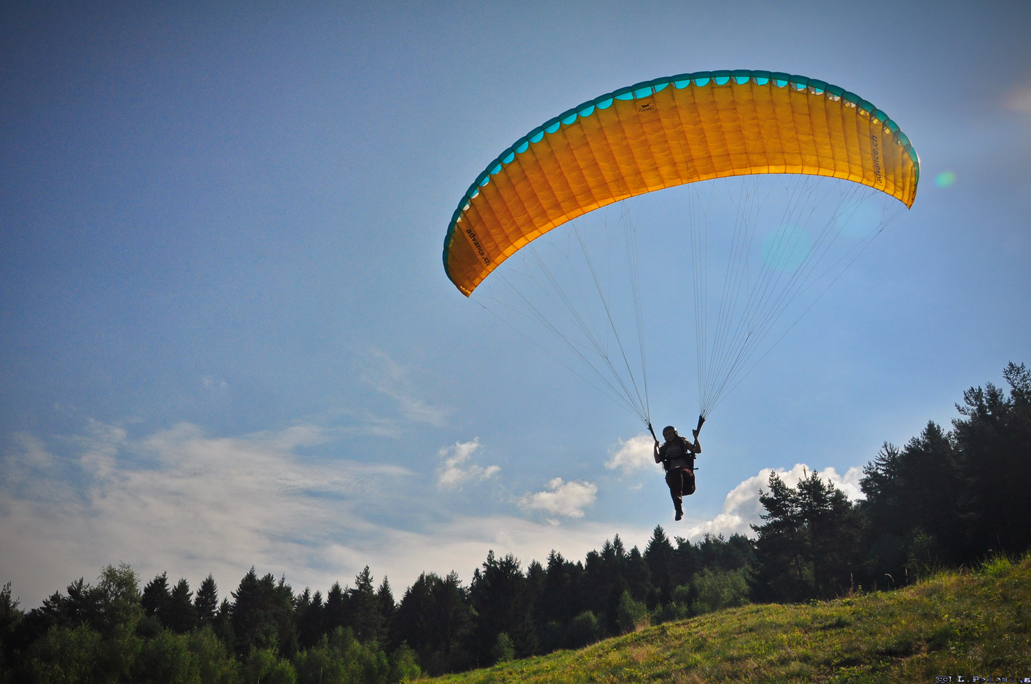 Uczeń tuż po starcie, Międzybrodzie Żywieckie, Szkoła Paralotniowa "ALTI", fot. Łukasz Polonius