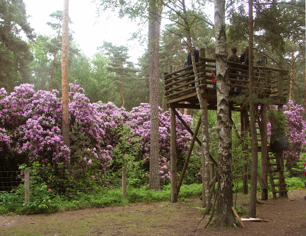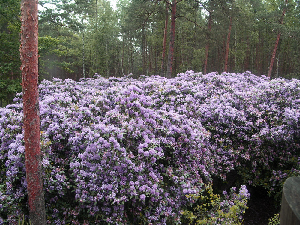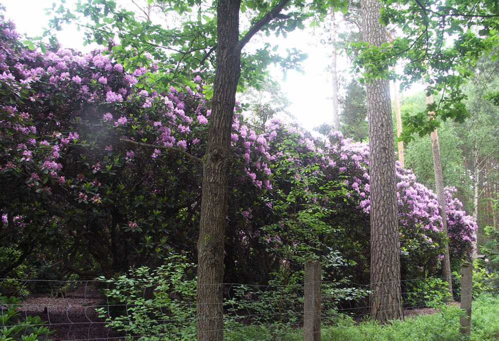 Do naszych czasów przetrwała także szkółka różanecznika katawbijskiego Nie wszystkie krzewy wykorzystano, zdążyły się zestarzeć i nie nadawany się już do przesadzania. I tak w środku sosnowego lasu powstała różowo-fioletowa enklawa, w okresie kwitnienia robiąca piorunujące wrażenie.
