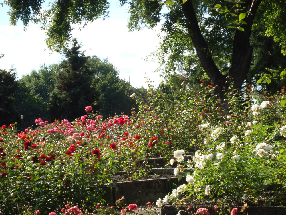 Poza odmianami róż wielokwiatowych (rabatowych), w rosarium trafimy na róże pienne (sztamowe), czepne (pnące) obrastające altany i pergole oraz róże miniaturowe.